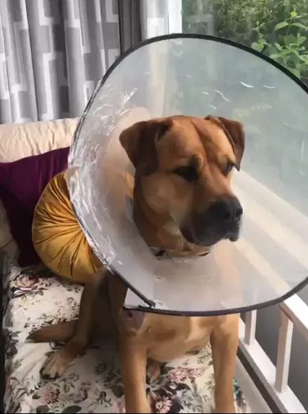 Becky was off to Rakiura with her whānau and I’d agreed to look after Bro, their big tan softy of a dog who looks like a killer but with eyes that are rimmed by kohl. Unfortunately Bro had been attacked on their way down the motu and he arrived wearing a cone of shame so he couldn't lick the gaping wound on his leg. Becky explained all his medicines to me and then readjusted his cone. She apologised to Bro for the noisy Velcro and told him it must be too loud for his ears. I mention this incident because it shows Becky’s preternatural empathy for all living things, not just people and because this ability to feel what others are experiencing is one of her many gifts as a writer.